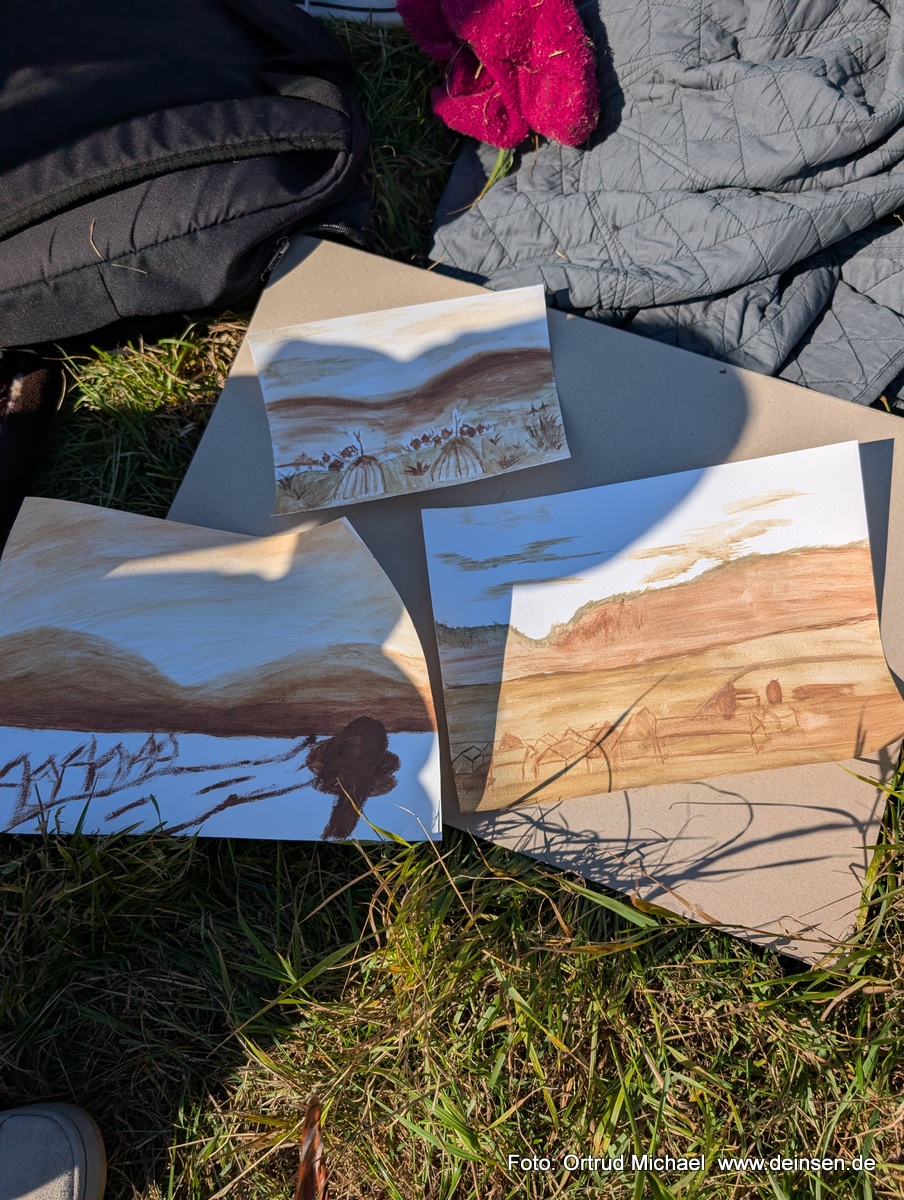 Die Auseinandersetzung der Schüler mit Erdfarben führte die Idee des Kunstwerks konsequent fort. So wie „Fata Morgana“ das Vergangene neu erfahrbar macht, holt auch das Zeichnen mit Materialien aus der Erde den Boden direkt in den künstlerischen Prozess. Damit wurde das Kunstwerk nicht nur betrachtet, sondern in eine schöpferische Erfahrung übersetzt, die Vergänglichkeit, Transformation und die elementare Verbindung zur Natur aufzeigt.
