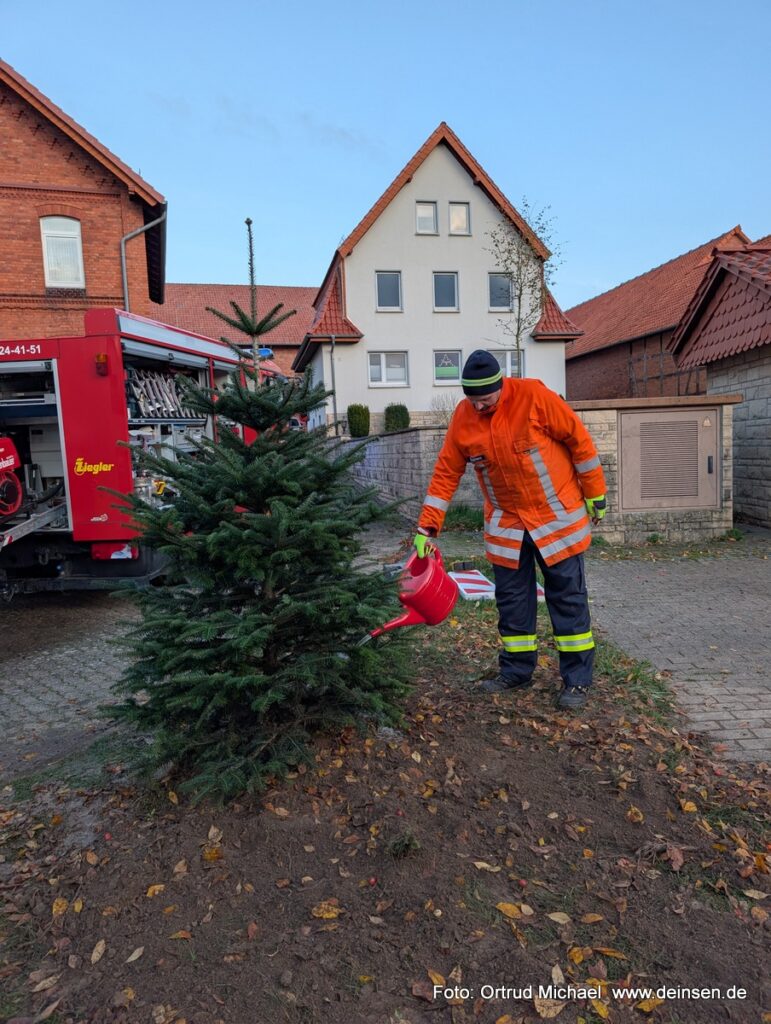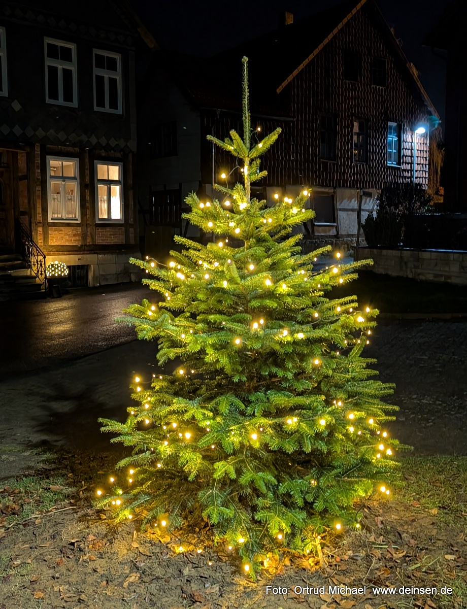 Während die Feuerwehr Deinsen die Pflanzung des Baumes übernahm, sorgte der Bauhof für die fachgerechte Installation der Elektrik. Die festliche Lichterkette, die den Baum nun in warmem Glanz erstrahlen lässt, wurde aus den Spenden des vergangenen Dorfflohmarkts finanziert.
