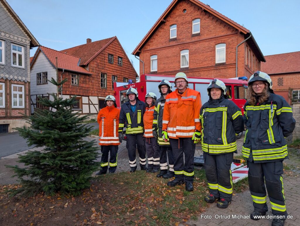 Auslöser war die Nominierung der Weihnachtsbaum-Challenge, die der Heimat- und Kulturverein Deinsen an die Freiwillige Feuerwehr weitergegeben hatte. Die Feuerwehr nahm die Herausforderung gerne an – und setzte gemeinsam mit weiteren Helfern das Projekt in die Tat um.